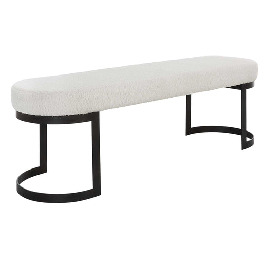 UttermostMerging Simplicity With Style, This Bench Features A Thick Hand Forged Iron Base Finished In Matte Black. The Plush Seat Is Upholstered In Natural ...