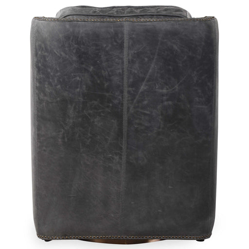 RevelationClassic leather lounge chair with comfortable box cushions and sloped arms, featuring character distressed top grain leather in charcoal gray, acce...