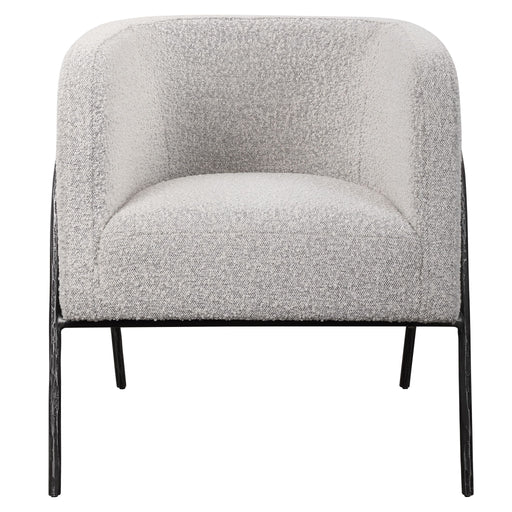 UttermostInspired By Scandinavian Designs, This Barrel Back Style Chair Showcases Elegant Off White Faux Shearling Nestled In A Curved Chiseled Iron Frame F...