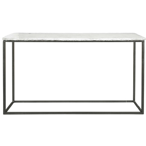 RevelationArtisan crafted with a hand chiseled natural Basra marble top, set on a simplistic iron frame finished in aged steel with an organic hammered textu...