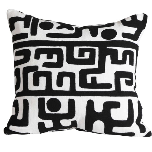 RevelationInspired by ancient hieroglyphics, this modern and fresh pillow features black textured cotton appliqued to a heavily-textured white cotton. Design...