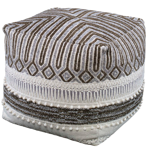RevelationEvocative of mid-20th century woven art, the Malibu Pouf, uses a wide variety of embroidery and knotting techniques. Boucle and chenille yarns, com...