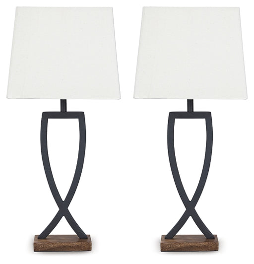 Signature Design by Ashley®This table lamp is an enticing merge of mixed materials. Textured black finished metal stands poised atop a block of warm brown wood. Open design i...