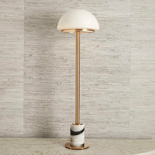 RevelationDramatic, rich, warm and glowing: the Mushroom Buffet Lamp has it all. It features an opal glass shade, a rich brass column, and rounded panda marb...