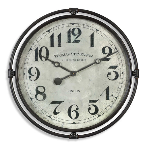 UttermostSmoke Gray Industrial Iron Frame With An Aged Ivory Clock Face Under Glass. Quartz Movement Ensures Accurate Timekeeping. Requires One "AA" Battery...