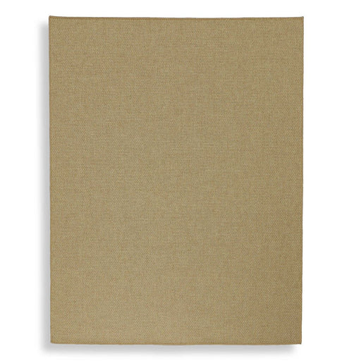 RevelationA woven rug in saddle color displays a basketweave pattern. The seagrass look is actually highly durable polypropylene that can be used indoor or o...