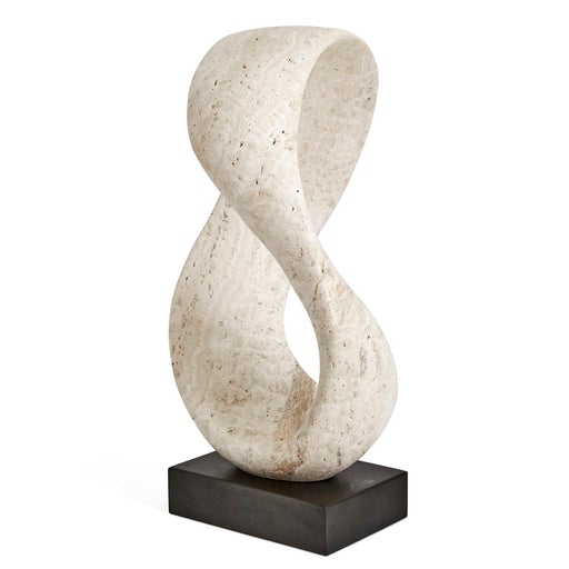 RevelationAn endless twisted loop of light beige unfilled honed travertine sits atop a bronzed metal base. Each angle provides a different perspective, creat...