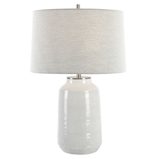 UttermostThis Farmhouse Inspired Ceramic Table Lamp Features An Off-white Crackle Glaze With Subtle Horizontal Striped Detailing, Paired With Plated Brushed...