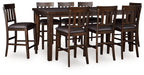 Details D596-32: Made with hardwood solids, select oak veneers and engineered wood, Dry, smoky dark brown oak finish, Self-storing butterfly leaf is a flexible, space-saving solution, Leaf folds away under table top when not in use, Seats up to 8, Assembly required, D596-124: Made of veneers, wood and engineered wood, Vinyl upholstery, Cushioned seat, Slat back design,