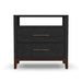 Add effortless style and architectural appeal to your living room with the Waterfall round end table. This striking table features a timeless silhouette defined by clean lines and simple geometric shapes, including a substantial sculptural crisscross base that supports the top. Group and nest this table with the coordinating Waterfall round coffee table for added visual interest and function. The Waterfall round end table is well-crafted from solid rubberwood with oak veneers and features a deep ebony finish for lasting beauty.