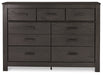 Details Made with engineered wood (MDF/particleboard/plywood) and decorative laminate for the right balance of affordability and durability, Dark charcoal finish over replicated oak grain, 7 smooth-gliding drawers; 3 drawer sizes, Linear pulls with dark pewter-tone finish, Safety is a top priority, clothing storage units are designed to meet the most current standard for stability, ASTM F 2057 (ASTM International), Drawers extend out to accommodate maximum access to drawer interior while maintaining safety, Assembly required