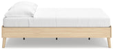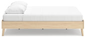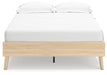 Details Queen platform bed includes footboard, rails and platform (does not include headboard), Made with engineered wood (MDF/particleboard/plywood) and decorative laminate for the right balance of affordability and durability, Decorative laminate replicates natural or man-made material surfaces with consistent color, pattern and texture, Natural colored replicated ash wood grain finish with authentic touch, Bed does not require a foundation/box spring, Mattress available, sold separately, Assembly required