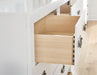 | Details | B427B9: Includes California king panel headboard, footboard, rails and slats, Made with hardwood solids, okoume veneer and MDF substrates, White finish, Foundation/box spring required, sold separately, Mattress available, sold separately, Assembly required, B427B1: Includes dresser and mirror, Made with hardwood solids, okoume veneer and MDF substrates, White finish, 6 drawers with dovetail construction and metal center guides, Hardware with dark finish, Drawer interiors are lined with a wood grain laminate for a clean, finished look, Mirror attaches to back of dresser, B427-92: Made with hardwood solids, okoume veneer and MDF substrates, White finish, 2 drawers with dovetail construction and metal center guides, Hardware with dark finish, Drawer interiors are lined with a clean wood grain laminate for a clean, finished look, | |