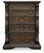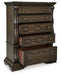 | Details | B947B5: Includes upholstered panel headboard, upholstered panel footboard and panel rails, Made with hardwood solids, oak and ash swirl veneers, MDF substrates and cast resin components, Dark brown finish, Polyester upholstery with button tufting, Foundation/box spring required, sold separately, Mattress available, sold separately, Assembly required, B947B1: Includes dresser and mirror, Made with hardwood solids, oak and ash swirl veneers, MDF substrates and cast resin components, Dark brown finish, 6 smooth-gliding drawers with dovetail construction (top drawer felt lined), Drawer pulls with antiqued goldtone finish, Mirror attaches to back of dresser, B947-46: Made with hardwood solids, oak and ash swirl veneers, MDF substrates and cast resin components, Dark brown finish, 5 smooth-gliding drawers with dovetail construction (top drawer felt lined), Drawer pulls with antiqued goldtone finish, B947-93: Made with hardwood solids, oak and ash swirl veneers, MDF substrates and cast resin components, Dark brown finish, 2 smooth-gliding drawers with dovetail construction (top drawer felt lined), Pull-out tray behind bottom drawer, Drawer pulls with antiqued goldtone finish, 110V power supply with dual USB charging ports, Power cord included; UL Listed, | |