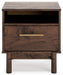 Details | Made with engineered wood (MDF/particleboard/plywood) and decorative laminate for the right balance of affordability and durability, Rich brown finish over replicated walnut wood grain with authentic touch, Burnished goldtone pulls, 1 smooth-gliding drawer with vinyl-wrapped sides and back, Open cubby, Assembly required | |