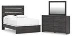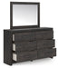 Details PCB2108B12: Includes panel headboard/footboard and rails, Made with engineered wood (MDF/particleboard/plywood) and decorative laminate for the right balance of affordability and durability , Charcoal finish over replicated oak grain with authentic touch, Decorative laminate replicates natural or man-made material surfaces with consistent color, pattern and texture, Foundation/box spring required, sold separately , Mattress available, sold separately, Minor assembly required, PCB2108B1: Includes dresser and mirror, Made with engineered wood (MDF/particleboard/plywood) and decorative laminate for the right balance of affordability and durability , Charcoal finish over replicated oak grain with authentic touch, Decorative laminate replicates natural or man-made material surfaces with consistent color, pattern and texture, Large-scale dark colored handles, 6 smooth-gliding drawers, Drawer interiors are lined with a faux linen laminate for a clean, finished look , Mirror attaches to back of dresser; can also be mounted on wall horizontally or vertically, Safety is a top priority, clothing storage units are designed to meet the most current standard for stability, ASTM F 2057 (ASTM International), Drawers extend out to accommodate maximum access to drawer interior while maintaining safety, Minor assembly required,
