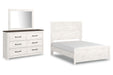 Details | B1190B4: Includes headboard, footboard and rails, Made of engineered wood (MDF/particleboard) and decorative laminate, White rustic finish with replicated cedar grain, Foundation/box spring required, sold separately, Mattress not included, sold separately, Assembly required, Bed is compatible with an adjustable base, B1190B1: Includes dresser with mirror, Made of engineered wood (MDF/particleboard) and decorative laminate, White rustic finish with replicated cedar grain, Rustic gray planked replicated oak grain with authentic touch, 6 smooth-gliding drawers with faux linen lining, Large scale dark colored handles, Mirror attaches to back of dresser, Assembly required, | |