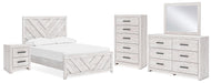 Cayboni Full Panel Bed with Mirrored Dresser, Chest and Nightstand