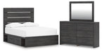 Hollivern Full Panel Bed with Storage with Mirrored Dresser
