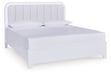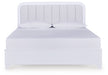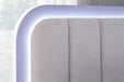 Details | Includes queen upholstered panel headboard, footboard, rails and roll slats, Made with hardwood solids and MDF substrates, Side rails feature laminated solid hardwood slat support rails (or LVL) with glued and screwed blocking for added strength , White paint finish, Polyester upholstery, Built-in LED lighting; 3-way dimmer switch, Power cord included; UL Listed, Bed does not require additional foundation/box spring; accommodates most zero clearance adjustable bases , Mattress available, sold separately, Assembly required | |