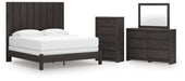 Details PCB3370B8: Includes headboard panel, headboard posts, footboard and rails, Made with engineered wood (MDF/particleboard/plywood) and decorative laminate for the right balance of affordability and durability , Dark charcoal finish over replicated oak grain, Decorative laminate replicates natural or man-made material surfaces with consistent color, pattern and texture, Foundation/box spring required, sold separately, Mattress available, sold separately, Assembly required, PCB3370B1: Includes dresser and mirror, Made with engineered wood (MDF/particleboard/plywood) and decorative laminate for the right balance of affordability and durability , Dark charcoal finish over replicated oak grain, Decorative laminate replicates natural or man-made material surfaces with consistent color, pattern and texture, Recessed hand grabs create hardware-less effect, 6 smooth-gliding drawers, Drawer interiors are lined with a faux linen laminate for a clean, finished look , Safety is a top priority, clothing storage units are designed to meet the most current standard for stability, ASTM F 2057 (ASTM International), Drawers extend out to accommodate maximum access to drawer interior while maintaining safety, Mirror attaches to back of dresser; can also be mounted on wall horizontally or vertically, Assembly required, PCB3370-46: Made with engineered wood (MDF/particleboard/plywood) and decorative laminate for the right balance of affordability and durability, Dark charcoal finish over replicated oak grain, Decorative laminate replicates natural or man-made material surfaces with consistent color, pattern and texture, Recessed hand grabs create hardware-less effect, 5 smooth-gliding drawers, Drawer interiors are lined with a faux linen laminate for a clean, finished look, Safety is a top priority, clothing storage units are designed to meet the most current standard for stability, ASTM F 2057 (ASTM International), Drawers extend out to accommodate maximum access to drawer interior while maintaining safety, Assembly required,