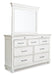 Details B777B9: Includes king panel headboard, storage bench footboard and rails, Made with solid wood, veneers and engineered wood, Distressed whitewash finish, Foundation/box spring required, sold separately, Mattress available, sold separately, Assembly required, B777B1: Includes dresser and mirror, Made with solid wood, veneers and engineered wood, Distressed whitewash finish, Dark gray pewter-tone finished metal hardware, 7 smooth-gliding drawers, plus 2 small-scaled accessory drawers, Mirror attaches to back of dresser, Assembly required, B777-46: Made with solid wood, veneers and engineered wood, Distressed whitewash finish, Dark gray pewter-tone finished metal hardware, 7 smooth-gliding drawers, B777-93: Made with solid wood, veneers and engineered wood, Distressed whitewash finish, Dark gray pewter-tone finished metal hardware, 2 smooth-gliding drawers, plus 1 small-scale top accessory drawer,