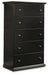 Details | Made of wood and engineered wood (MDF/particleboard), Antiqued black finish, Rubbed dark metal hardware, 5 smooth-gliding drawers, Includes tipover restraint device, Small Space Solution, Safety is a top priority, clothing storage units are designed to meet the most current standard for stability, ASTM F 2057 (ASTM International), Drawers extend out to accommodate maximum access to drawer interior while maintaining safety | |