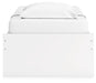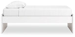 Details Includes panels, rails and roll slats, Made with engineered wood (MDF/particleboard/plywood) and decorative laminate for the right balance of affordability and durability, Solid white finish, Decorative laminate replicates natural or man-made material surfaces with consistent color, pattern and texture, Bed does not require additional foundation/box spring; accommodates most zero clearance adjustable bases, Mattress available, sold separately, Assembly required