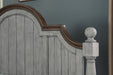 Drift off to sleep in the cozy, cottage-style Plymouth Poster Bed, featuring charming, paneled accents and detailed molding on the headboard and footboard. Available in California King size as well as Queen and King sizes, this bed is crafted with high-quality construction, ensuring it can be enjoyed for generations to come. The graceful, scalloped profile of the headboard and intricately carved posts make this bed a statement piece. Finished in a distressed graywash highlighted by contrasting medium brown accents, the Plymouth poster bed brings warmth and character to any bedroom.