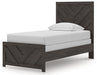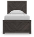 Details | Includes panel headboard, footboard and rails, Made with engineered wood (MDF/particleboard/plywood) and decorative laminate for the right balance of affordability and durability, Dark charcoal finish over replicated oak grain, Decorative laminate replicates natural or man-made material surfaces with consistent color, pattern and texture, Foundation/box spring required, sold separately, Mattress available, sold separately, Minor assembly required | |