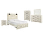 Details | B192-46: Made of engineered wood (MDF/particleboard) and decorative laminate, Wispy white finish over replicated oak grain with authentic touch, Large-scale hardware with dark finish, 5 smooth-gliding drawers, Drawer interiors are lined with a faux linen laminate for a clean, finished look, Safety is a top priority, clothing storage units are designed to meet the most current standard for stability, ASTM F 2057 (ASTM International), Drawers extend out to accommodate maximum access to drawer interior while maintaining safety, B192-92: Made of engineered wood (MDF/particleboard) and decorative laminate, Wispy white finish over replicated oak grain with authentic touch, Large-scale hardware with dark finish, 2 smooth-gliding drawers, Drawers lined with faux linen laminate for finished aesthetic, 2 slim-profile USB charging stations, Power cord included; UL Listed, B192B1: Includes dresser with mirror, Made of engineered wood (MDF/particleboard) and decorative laminate, Wispy white finish over replicated oak grain with authentic touch, 6 smooth-gliding drawers, Drawer interiors are lined with a faux linen laminate for a clean, finished look, Large-scale hardware with dark finish, Mirror attaches to back of dresser, Assembly required, B192B8: Includes headboard, footboard and rails, Made of engineered wood (MDF/particleboard) and decorative laminate, Wispy white finish over replicated oak grain with authentic touch, Large-scale hardware with dark finish, 2 decorative sconce lights, LED with 3 AA batteries, 2 smooth-gliding storage drawers, 2 slim-profile USB charging ports, Power cord included; UL-listed, Foundation/box spring required, sold separately, Mattress available, sold separately, Assembly required, Bed is not compatible with an adjustable base, | |
