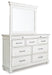 Details | B777B1: Includes dresser and mirror, Made with solid wood, veneers and engineered wood, Distressed whitewash finish, Dark gray pewter-tone finished metal hardware, 7 smooth-gliding drawers, plus 2 small-scaled accessory drawers, Mirror attaches to back of dresser, Assembly required, B777B2: Includes queen panel headboard, footboard and rails, Made with solid wood, veneers and engineered wood, Distressed whitewash finish, Foundation/box spring required, sold separately, Mattress available, sold separately, Assembly required, | |
