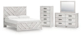 Cayboni Queen Panel Bed with Mirrored Dresser and Chest