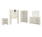 Details B192-57: Made of engineered wood (MDF/particleboard) and decorative laminate, Wispy white finish over replicated oak grain with authentic touch, 2 decorative sconce lights, LED with 3 AA batteries, 2 slim-profile USB charging stations, Power cord included; UL Listed, Hardware not included, ¼" bolts are needed to attach headboard to existing bed frame, Bolt length depends on thickness of your bed frame, Assembly required, B192-46: Made of engineered wood (MDF/particleboard) and decorative laminate, Wispy white finish over replicated oak grain with authentic touch, Large-scale hardware with dark finish, 5 smooth-gliding drawers, Drawer interiors are lined with a faux linen laminate for a clean, finished look, Safety is a top priority, clothing storage units are designed to meet the most current standard for stability, ASTM F 2057 (ASTM International), Drawers extend out to accommodate maximum access to drawer interior while maintaining safety, B192-92: Made of engineered wood (MDF/particleboard) and decorative laminate, Wispy white finish over replicated oak grain with authentic touch, Large-scale hardware with dark finish, 2 smooth-gliding drawers, Drawers lined with faux linen laminate for finished aesthetic, 2 slim-profile USB charging stations, Power cord included; UL Listed, B192B1: Includes dresser with mirror, Made of engineered wood (MDF/particleboard) and decorative laminate, Wispy white finish over replicated oak grain with authentic touch, 6 smooth-gliding drawers, Drawer interiors are lined with a faux linen laminate for a clean, finished look, Large-scale hardware with dark finish, Mirror attaches to back of dresser, Assembly required,