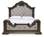 Details B947B2: Includes upholstered panel headboard, upholstered panel footboard and panel rails, Made with hardwood solids, oak and ash swirl veneers, MDF substrates and cast resin components, Dark brown finish, Polyester upholstery with button tufting, Foundation/box spring required, sold separately, Mattress available, sold separately, Assembly required, B947B1: Includes dresser and mirror, Made with hardwood solids, oak and ash swirl veneers, MDF substrates and cast resin components, Dark brown finish, 6 smooth-gliding drawers with dovetail construction (top drawer felt lined), Drawer pulls with antiqued goldtone finish, Mirror attaches to back of dresser,