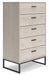 Light and bright, this chest of drawers is inspired by chic design. A light natural finish over replicated oak grain offers an authentic touch to this so-cool piece. It beautifully blends the hues of natural living with the edginess of your modern lifestyle.