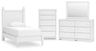 Mollviney Twin Panel Bed with Mirrored Dresser and Chest
