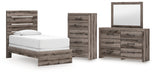 Graystorm Twin Panel Bed with Mirrored Dresser and Chest