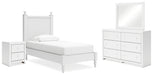 Mollviney Twin Panel Bed with Mirrored Dresser and Nightstand