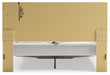 Details Includes queen upholstered panel headboard, storage footboard, platform rails and roll slats, Made with engineered wood (MDF/particleboard) and decorative laminate, Light finish with subtle pearl effect over replicated cedar grain with authentic touch, Gray polyester upholstery with faux crystal button tufting, Large scale chrome-tone handles with mosaic details, Glitter panel accent, Faceted chrome-tone accents, 2 smooth-gliding drawers in footboard, LED light strip with remote-controlled color and brightness options; included remote holder discreetly keeps light remote accessible, Power cord included; UL Listed, Mattress available, sold separately, Bed does not require additional foundation/box spring; accommodates most zero clearance adjustable bases with the addition of a bunkie board, Assembly required