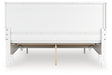 Details Includes panel headboard, storage footboard, rails and roll slats , Made with hardwood solids and MDF substrate, Side rails feature laminated solid hardwood slat support rails (or LVL) with glued and screwed blocking for added strength , White painted finish, Round metal drawer knobs with satin nickel-tone finish, Tapered feet, 2 smooth-gliding drawers in footboard , Bed does not require additional foundation/box spring; accommodates most zero clearance adjustable bases with the addition of a bunkie board , Mattress available, sold separately, Assembly required