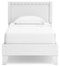 Details Twin panel platform bed includes panel headboard and platform bed, Made with engineered wood (MDF/particleboard) and decorative laminate, Decorative laminate replicates natural or man-made material surfaces with consistent color, pattern and texture, Matte white finish, Bed does not require additional foundation/box spring; accommodates most zero clearance adjustable bases, Mattress available, sold separately , Assembly required