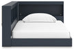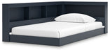 Details | Includes bookcase storage unit with end panel and bookcase storage unit with side rail, Made with engineered wood (MDF/particleboard/plywood) and decorative laminate for the right balance of affordability and durability, Matte navy blue finish, Decorative laminate replicates natural or man-made material surfaces with consistent color, pattern and texture, 2 slim-profile USB charging ports , Power cord included; UL Listed, Bed does not require additional foundation/box spring; accommodates most zero clearance adjustable bases , Mattress available, sold separately, Assembly required | |