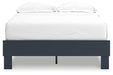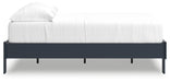 Details | Twin platform bed includes footboard, rails and platform (does not include headboard), Made with engineered wood (MDF/particleboard/plywood) and decorative laminate for the right balance of affordability and durability, Matte navy blue finish, Decorative laminate replicates natural or man-made material surfaces with consistent color, pattern and texture, Bed does not require additional foundation/box spring; accommodates most zero clearance adjustable bases, Mattress available, sold separately, Assembly required | |