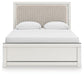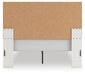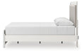Details Includes upholstered panel headboard, panel footboard, platform rails and roll slats , Made with engineered wood (MDF/particleboard/plywood) and decorative laminate for the right balance of affordability and durability , Matte white finish with subtle replicated wood grain , Decorative laminate replicates natural or man-made material surfaces with consistent color, pattern and texture , Polyester upholstery , Chrome-tone and glitter accents, Bed does not require additional foundation/box spring; accommodates most zero clearance adjustable bases , Mattress available, sold separately, Minor assembly required