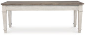 Details | Made of wood, acacia veneer and engineered wood, Distressed grayish white finish, Seat opens to reveal hidden storage, Assembly required | |