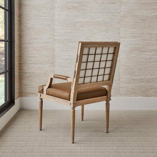 RevelationA fresh interpretation of the classic French chair, this armchair's outside back features a brown leather cord grid over textured cream color uphol...