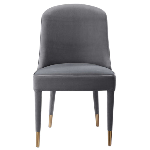 UttermostPerfect For Modern Dining, This Armless Chair Features Sleek Lines Covered In A Light Gray Velvet With Welted Trim And Accented With Brushed Brass ...