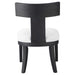This Modern Take On A Klismos Chair Features A Curved Rubber Wood Frame That Has Been Wire Brushed And Rubbed In A Charcoal Black Stain, Paired With A Stone White Slubbed Performance Fabric Cushion.