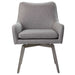 Perfect for dining or as a pull up chair, it swivels and turns to provide ultimate function as well as classic modern elegance. The fully upholstered chair seems to float above a brushed stainless base. Fully upholstered in a woven fabric with a special finish that resists soiling and stains. Seat height is 19".
